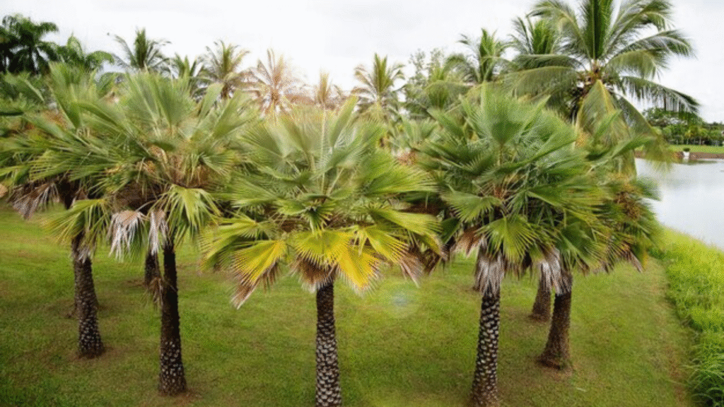 Date Palm: Known for producing sweet dates, this palm is tough and can handle some cold. It’s popular in Mediterranean climates.